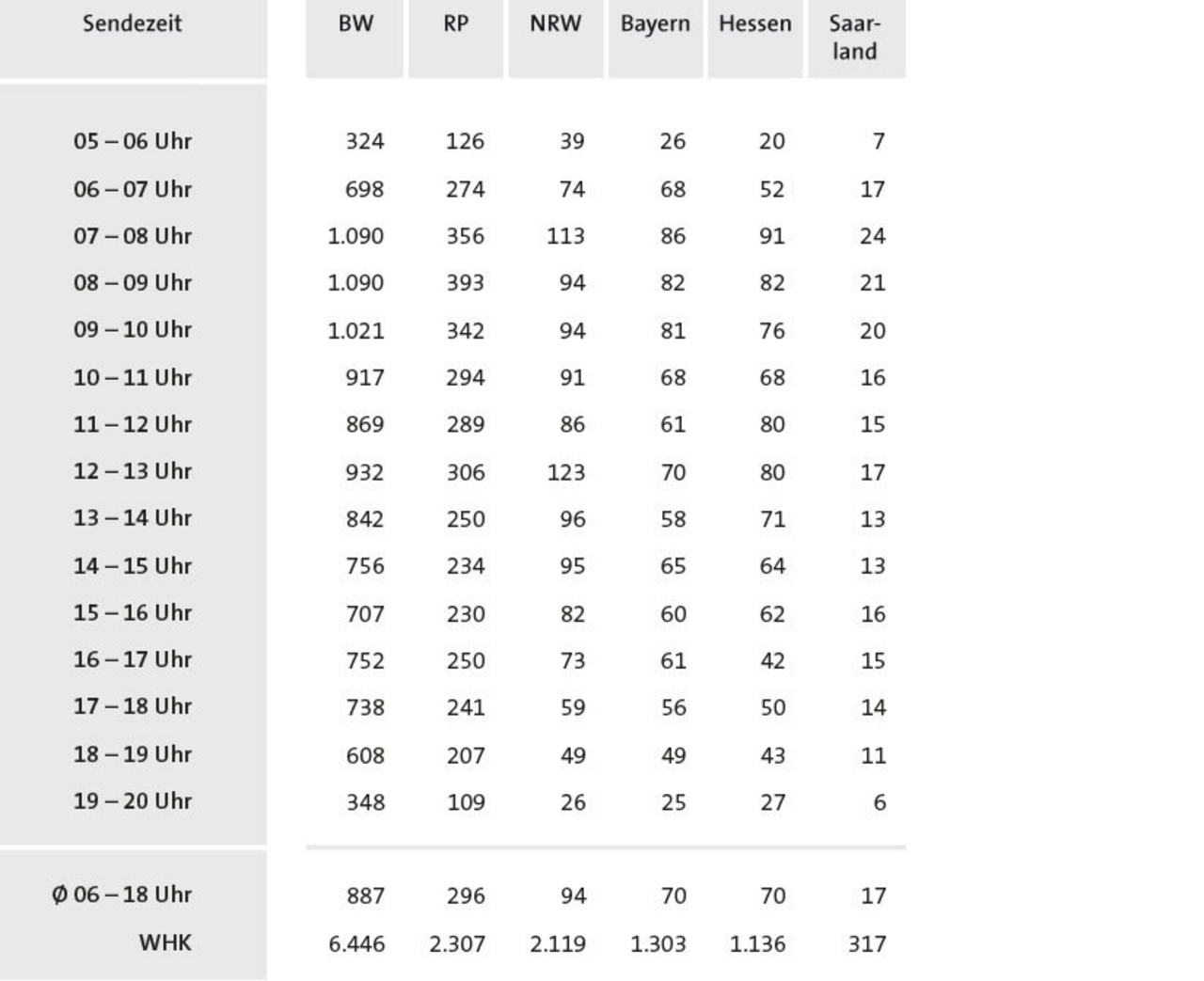 Hörer pro Stunde und Weitester Hörerkreis (WHK, 4 Wochen), Basis: BRD Gesamt, Zielgruppe: Deutschsprachige Bevölkerung 14+ Jahre.