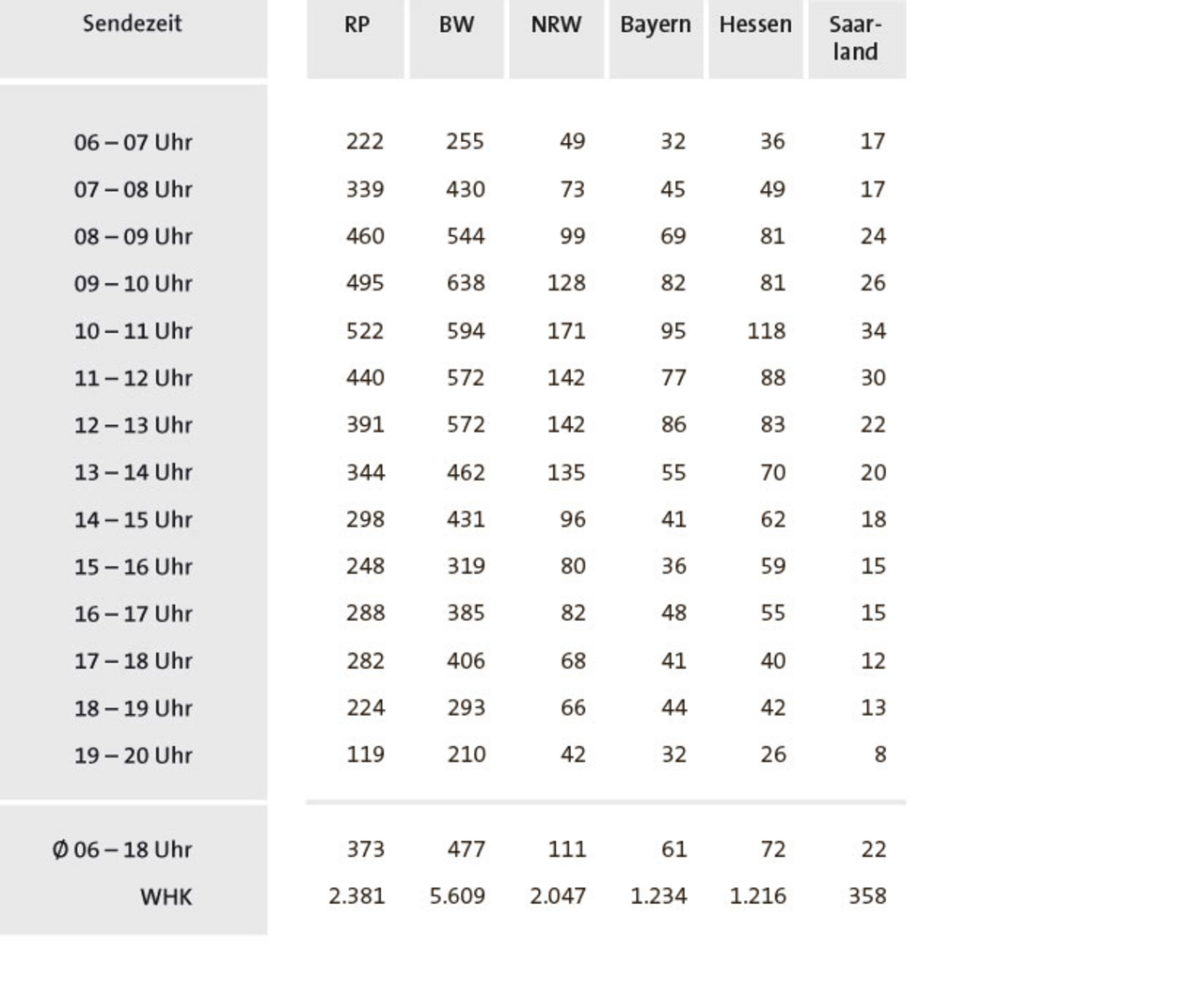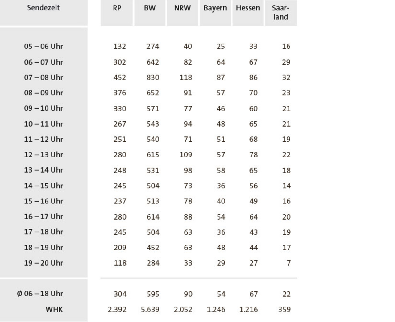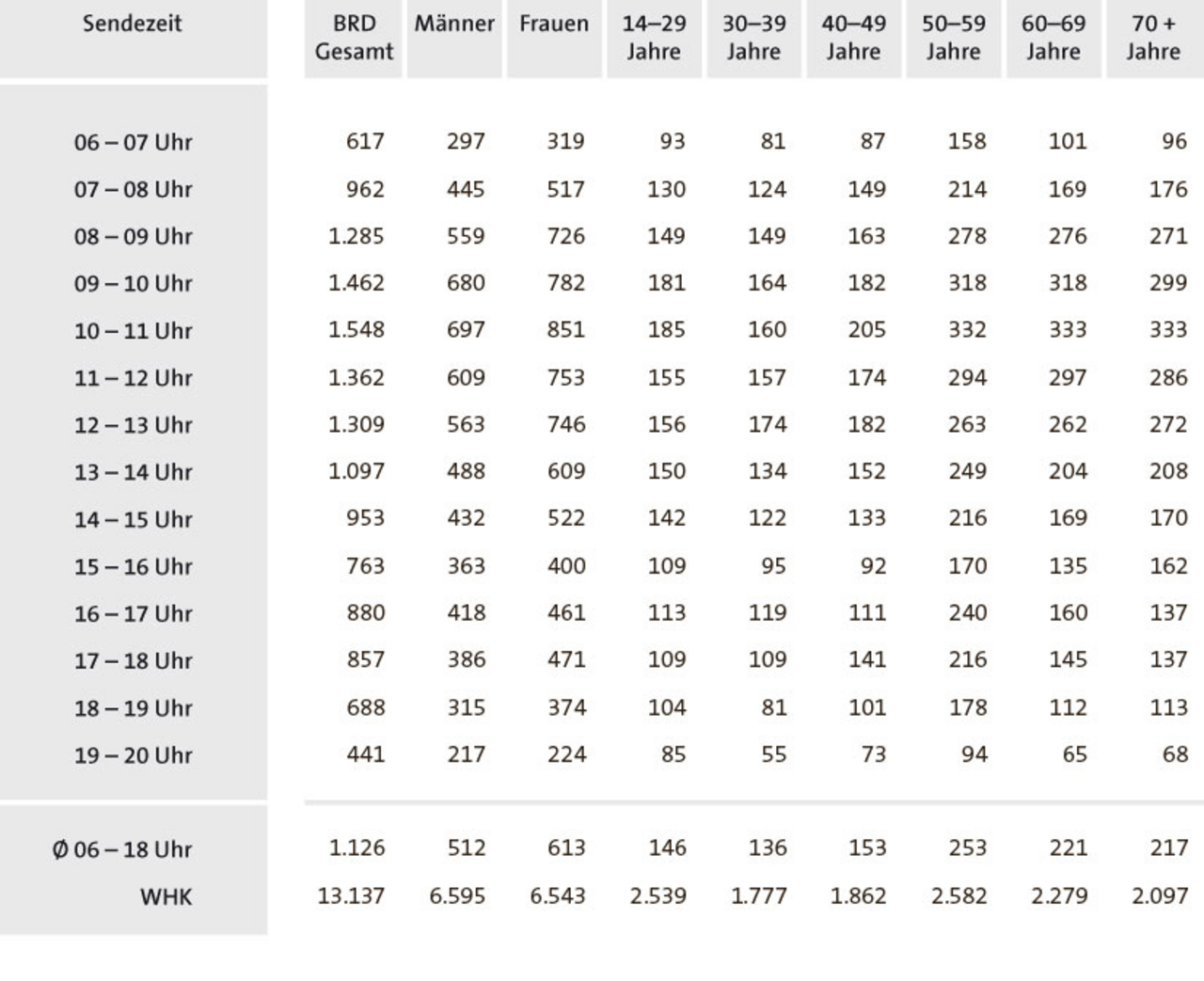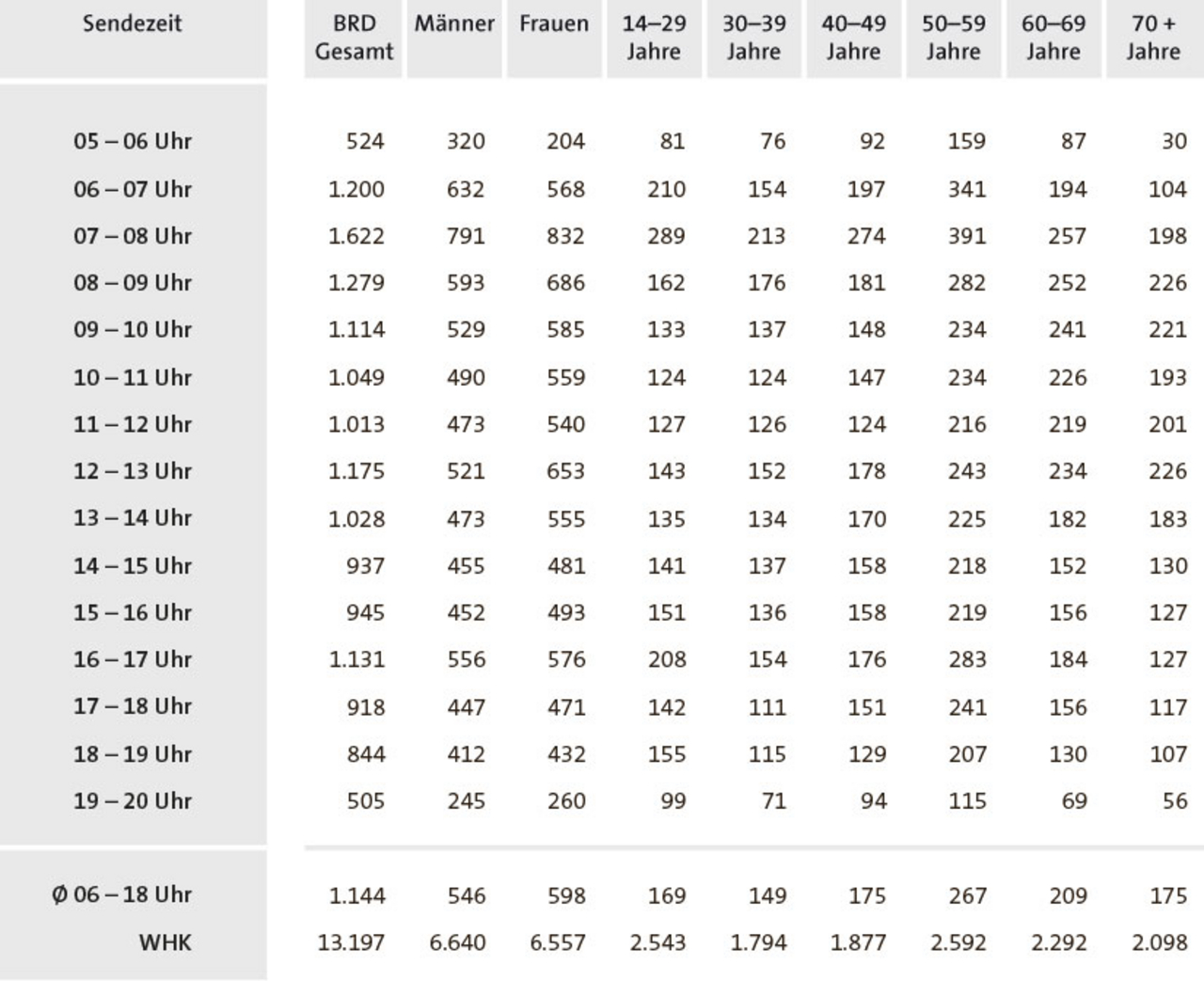 Hörer pro Stunde und Weitester Hörerkreis (WHK, 4 Wochen), Basis: BRD Gesamt, Zielgruppe: Deutschsprachige Bevölkerung 14+ Jahre.