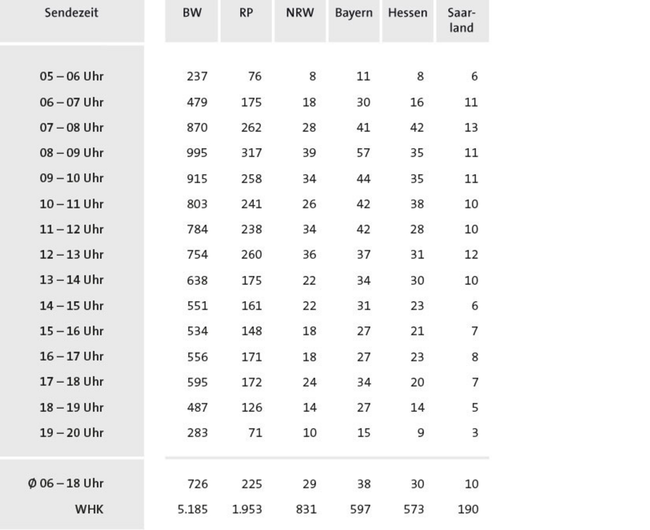 Hörer pro Stunde und Weitester Hörerkreis (WHK, 4 Wochen), Basis: BRD Gesamt, Zielgruppe: Deutschsprachige Bevölkerung 14+ Jahre.