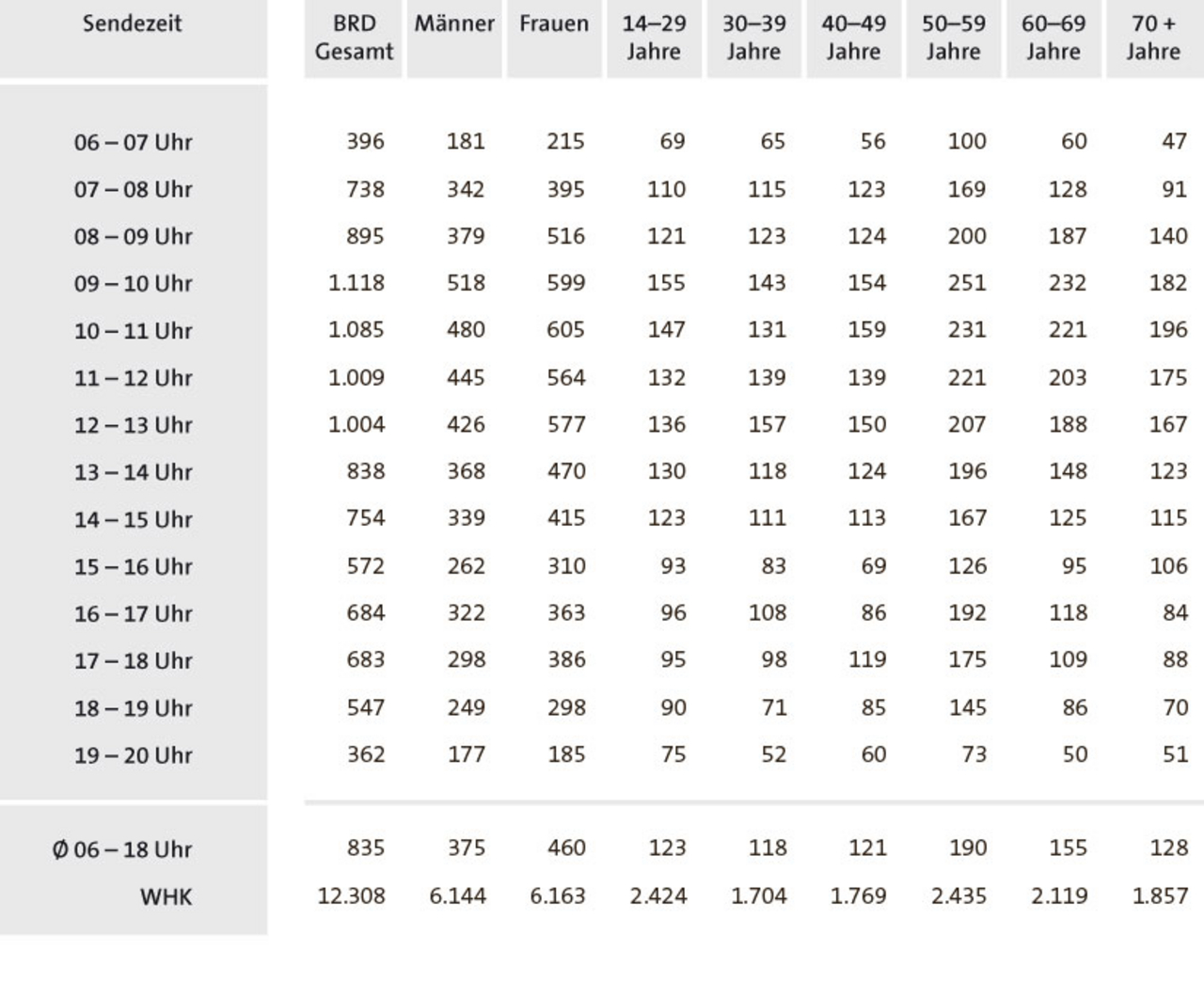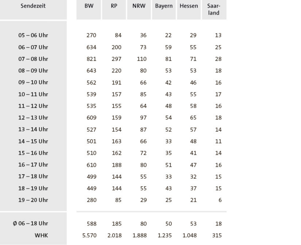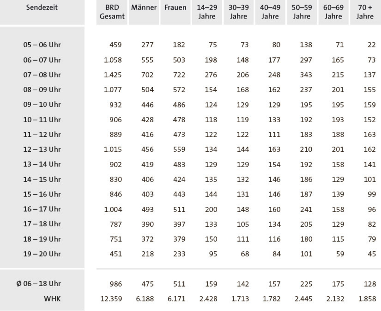 - wird von 986.000 (Mo–Fr) bzw. 835.000 (Sa) Hörer*innen gehört.